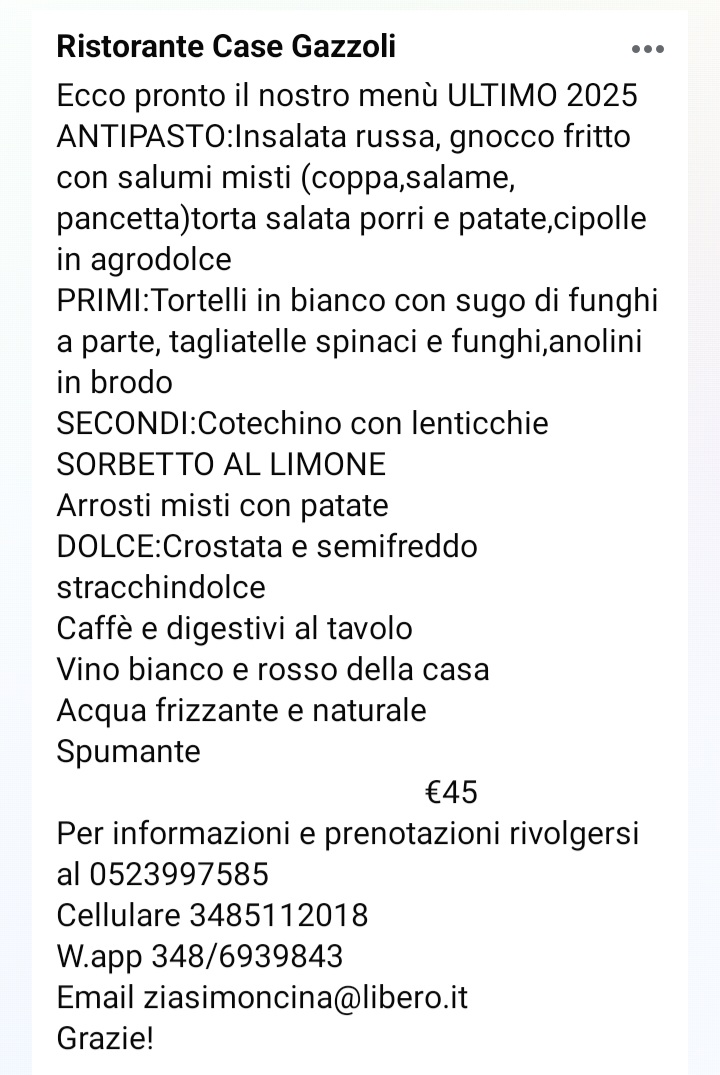 Consigliamo sempre una telefonata per informarsi sul menù del fine settimana.....grazie